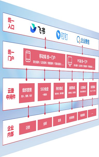 对协作平台提供支持服务,,,支持企业应用与协作平台对接,,,包含组织同步、、消息集成、、、、待办集成等。。。支持目前主流的协作平台:钉钉、、企微和飞书。。。